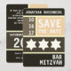 Cores escuras. Um design simples e limpo. Tipo grande. A Estrela de David... apareceu em seguida. Este Bar moderno e exclusivo Mitzvah salva o convite de data e apresenta uma paleta complementar com cada seção definida por uma cor de fundo única. Todas as informações impressas podem ser personalizadas com o nome do seu filho e a data do evento... basta preencher os campos!