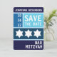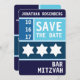 Cores escuras. Um design simples e limpo. Tipo grande. A Estrela de David... apareceu em seguida. Este Bar moderno e exclusivo Mitzvah salva o convite de data e apresenta uma paleta complementar com cada seção definida por uma cor de fundo única. Todas as informações impressas podem ser personalizadas com o nome do seu filho e a data do evento... basta preencher os campos!