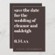 These personalized save the date cards in brown give guests an early heads-up while setting the tone for your wedding day. Customize the names, date, location, and website to share the details guests need most, whether you’re planning a destination wedding or a local celebration. The bold, modern typography stands out in the mail and pairs easily with minimalist or contemporary wedding stationery. A simple, effective option for couples who want their save the date to feel intentional and easy to read.