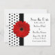 Chic e retro clássico, retro preto e branco, bolinhas vermelha, gerbera, casamento da margarida, salvem o anúncio da data. Flor grande, arrojada, de margarida vermelha, emparelhada com bolinhas preto e branco retrô. Divertido para um 50 retrô ou casamento dos anos 60 com um tema de bolinhas e margarida gerbera.