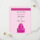 Um design elegante com um elegante bolo de casamento rosa com flores e fitas no topo. Um fundo cor-de-rosa suave com um sotaque rosa bonito ao longo do topo. Personalizar com nomes e data de casamento, conforme desejado.