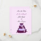 Um design clássico com um bolo de casamento de três camadas em tons de flores brancas em cascata roxas com sotaques roxos e fitas bonito. Personalizar com nomes e data de casamento, conforme desejado.