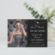 Uma foto Salve a data de um aniversário de 30 (ou qualquer idade) Na frente: adicione uma foto de tamanho vertical. Uma cor de fundo preto clássica, decorada com estrelas. Personalize e adicione um nome e detalhes. Cartas brancas.