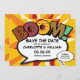 Personalize com seus nomes e detalhes para anunciar a data de seu evento especial. O pop de quadrinhos com arte tem o tema moderno, divertido design, perfeito para casamentos, chás de panela, chás de fraldas, batismos, festas de noivado, comemorações de aniversário, graduações, festas de aniversário e outros eventos especiais ao longo do ano! Uma design legal, moderna e divertida que coloca o golpe no seu dia. Projetado por Thisnotme©