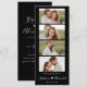 Bookmark de Foto Preto Minimalista na moda Salve o cartão Data. Apresentar um roteiro elegante de tipografia escrita à mão com coração amoroso entre os nomes e 4 fotos em preto. Estes marcadores de fotos são uma forma perfeita de anunciar seu dia especial a todos os seus amigos e familiares.