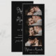 Bookmark de Foto Minimalista com Script Elegante na moda Salve o cartão Data em preto. Possui um elegante script de nome de caligrafia com letra branca e 4 fotos em fundo preto. Estes marcadores de fotos são uma forma perfeita de anunciar seu dia especial a todos os seus amigos e familiares.