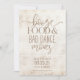 Esta salvação apresenta um fundo rústico e "bebida, comida e maus movimentos de dança" para criar uma maneira divertida de dizer aos seus convidados a data do seu casamento.