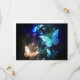 Fabulosa, brilhante, azul e amarela, borboleta noturna sobre fundo escuro.