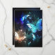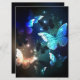 Fabulosa, brilhante, azul e amarela, borboleta noturna sobre fundo escuro.