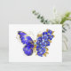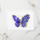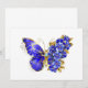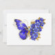 Joias, azul, safira, borboleta flor cintilante com asa decorada com flores azuis preciosas com folhas de ouro sobre fundo branco.