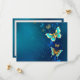 Ouro voador, borboleta de joias em fundo textural azul. Design com borboletas.