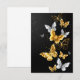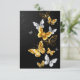 Borboletas Douradas, joias e brancas sobre fundo preto. Borboleta ouro.
