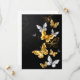 Borboletas Douradas, joias e brancas sobre fundo preto. Borboleta ouro.