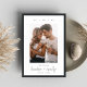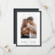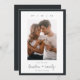 Um elegante e minimalista salva o design da placa de data apresentando uma foto vertical solteiro em um fundo branco com uma fina borda preta suave. Personalize com sua data de casamento e sua localização em caracteres modernos de bloqueio, e seus nomes em chic, escrita manual casual. Personalize a parte de trás desta simples design com detalhes adicionais, como o seu site de casamento.
