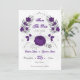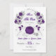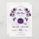 Romântica, roxo real e flores brancas com folhas de prata botânicas, exceto o convite de data. Os detalhes da brilha são simulados.