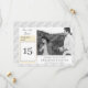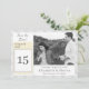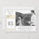 Design apresenta a aparência de um local branco como fundo tanto na frente quanto no verso. Frente esquerda mostra a imagem de um calendário diário mostrando claramente sua data de casamento. Sua foto é exibida como a imagem principal à direita do calendário. O dia e a data do casamento, os nomes do casal e da cidade da cerimônia aparecem logo abaixo da foto contra um backing branco. Inverte o monograma do sobrenome. Muito elegante. Projetado para coordenar com a coleção de Suite Casado Monograma Católico de Lace Branco.