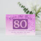 Envie um na moda "Salve a Data" para seus amigos e família para o seu aniversário de 80, com este brilho rosa moderno caindo do lado de um fundo gradiente rosa.