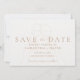 Celebre sua história de amor com um estilo de brinde e eterno. Esta torrada Elegante de Vinho Salve o cartão de Datas apresenta um desenho moderno de uma linha de um casal de vidros gentilmente picante, simbolizando o doce começo de sua eternidade. Com uma elegante tipografia de serifa de ouro e um layout limpo e contemporâneo, esta design é perfeita para casais que apreciam beleza sutil e charme sofisticado. Personalize os nomes, a data e a localização para corresponder à sua visão de casamento. Quer você esteja planejando um casamento de vinhedo, uma família de cidade, ou um encontro íntimo com suas pessoas favoritas, este design dá o tom perfeito — sem esforço, quente e cheio de coração.