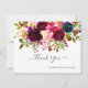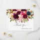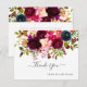Cartão de agradecimento, apresentando um buquê floral boho em rosa, vermelho masala, borgonha e azul-marinho com Fundo DIY.