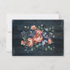 Uma ilustração clipart de aquarela de um buquê de peônias azul marinho e cobre envolto em corda de juta e arame de cobre. O buquê é colocado sobre um fundo branco. As peônias têm acabamento dourado em suas pétalas. Há também pequenas flores da mesma cor que as peônias no buquê. Tábuas de madeira azul marinho para o fundo.