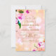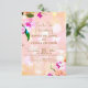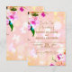 Lindo cartão de "Save the Date" de casamento floral elegante apresentando um buquê de orquídeas sobre um fundo rosa pêssego. O texto é totalmente personalizável.
