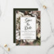 Um buquê floral de feto etéreo em tons de branco de inverno e cor-de-rosa empoeirado com verde sazonal está encoberto sobre um fundo cor-de-rosa empoeirado convidando seus convidados a "Salvar a Data" para o que é certamente uma ocasião memorável de casamento rústico. A parte de trás apresenta um fundo verde escuro. A cor do texto é escura em verde. Basta adicionar seus nomes e detalhes do casamento para completar. O texto "Salvar a Data" só pode ser editado pelo designer, mas o texto restante é editável. Design composto por Holiday Hearts Design (direitos reservados).