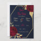 flores românticas elegantes e folhas de ouro num quadro geométrico azul marinho salvo convite à data
