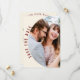Elegante cartão de aviso de casamento minimalista em marrom-água, burgundy e vermelho com coroa botânica, convite de casamento simples e clássico para outono. Ótimo para casamento moderno clássico, casamento vintage e casamento formal. Explore a coleção completa para itens correspondentes. Clique no botão de editar para personalizar este design. O design apresenta foto do casal na frente e coroa botânica no verso com foto