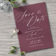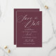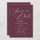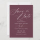 Salve as datas simples e elegantes com o texto "Salvar a Data" em um script inspirado na safra. Fonte branca contrastante em um fundo vermelho escuro.