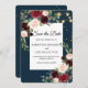 Reserve A Data Burgundy Rústico Azul Marinho & Flores Vermelhas