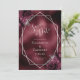 Este elegante casamento moderno salva o cartão de data apresenta uma estrutura geométrica prateada decorada com buquês florais de burgundy e prata em um fundo vermelho de película vermelho burgundy. O texto personalizável combina a escrita manual imétrica de cinzas prateadas, a placa de cobre e as fontes itálicas.
