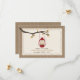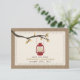 Um casamento no outono do outono ao ar livre, exceto a data com um tema de natureza selvagem/acampamento, com a ilustração de um candeeiro vermelho pendurado num galho de árvores com folhas laranja e marrom. O fundo na frente e no verso é inspirado em burlap.