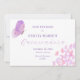 Butterflies Quinceañera Save The Date, todo o texto é editável. Possui borboletas rosa e roxa.