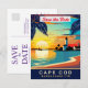 Convite de casamento Cape Cod para guardar a data, cartão postal de viagem. Farol na costa com pôr do sol na paisagem.