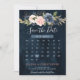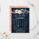 Lindo cartão de calendário de casamento boho floral apresenta gráficos florais pintados à mão em tons ricos de azul marinho e rosa bege / pêssego e fonte de estilo de letra à mão.