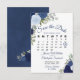 Este casamento Salve o cartão de data apresenta um design floral típico boho rústico com letras de guião e rosas de aquarelas pintadas manualmente em tons de azul empoeirado. Há um calendário personalizável onde você pode colocar um coração em volta da data do casamento com espaço para o nome do casal e local do casamento. Elegante, na moda e chic, este cartão é uma forma excelente de deixar seus amigos e família saberem salvar a data do seu dia especial.