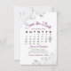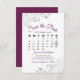 Essa placa Save the Date (Salvar a data) apresenta um belo design com o chassis roxo ou magenta e a inscrição de cinzas em um fundo branco, e fotos de cinza prateada nos cantos. Há um calendário personalizável onde você pode colocar um coração em volta da data do seu casamento. Há espaço para o nome do casal, a localização do casamento e o site. Uma maneira elegante e chique de deixar seus amigos e família saberem salvar a data para seu dia especial.