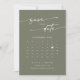 Este calendário fotográfico de código QR verde-azul-boho salva o cartão de data é perfeito para um casamento minimalista. A design boêmica moderna de tom verde-escuro de madeira apresenta caligrafia rustica simples com um estilo único, mas clássico. Personalize sua data de salvamento com o calendário do mês do seu casamento, com um coração na data do seu casamento, seus nomes, local do casamento, uma foto de noivado e um código QR que liga ao seu site de casamento.