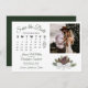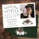 Este belo casamento Salve o cartão de data apresenta um design bócio rústico com letras de guião e um aglomerado de pinecones de aquarelas pintadas manualmente e frondes de pinheiros em tons de verde-floresta e castanho-castanho. Há um calendário personalizável onde você pode colocar um coração em volta da data do casamento com espaço para sua foto, o nome do casal e a localização do casamento. Elegante, na moda e chic, este cartão é uma forma excelente de deixar seus amigos e família saberem salvar a data do seu dia especial.