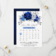 Reserve A Data Calendário floral azul royal branco prateado metál