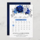 Reserve A Data Calendário floral metálico azul real branco prata