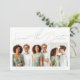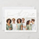 Cláusula branca de escrita verde de imagem com três imagens de colagem Guardar o cartão Data. Anuncie seus futuros núpcias com este cartão de "Salvar a Data", projetado de forma refinada, com uma caligrafia captivante de script verde Sage que empresta um ar de elegância refinada. A frente da placa é uma agradável colagem de três fotos, permitindo que você exiba momentos prezados. Ao entregar o cartão, você descobrirá mais uma fotografia amada, acompanhada pelos nomes dos casais e um link conveniente para o site do casamento, garantindo que os convidados tenham todos os detalhes necessários à mão. Este cartão é a maneira perfeita de dar um tom sofisticado e memorável para o seu dia especial.