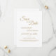 Essa simples caligrafia dourada salva a data traz um luxo elegante, mas moderno, a um casamento minimalista e mais tradicional ou formal. A caligrafia casual permite um sentimento antigo, enquanto o design neutro de classe pode ser combinado com quaisquer aspectos únicos da celebração do casamento.