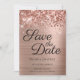 Crie seu casamento moderno, salve as datas. Bordas superiores brilhantes de rosa dourado cintilante, unidas por uma folha metálica cor-de-rosa-pincel e rosa dourada-ombre. Toda a textura brilhante, faísca, metálica e brilhante é criada por uma imagem gráfica digital impressa. O estilo e a cor da fonte podem ser personalizados.