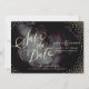 Glamor gold lettering calliografia design e pontos dourados confetti sobre fundo de cor-de-água escuro preto-noite, efeito brilhante metálico de ouro, moderno, chic, elegante e elegante, perfeito para casamento vintage ou casamento no inverno à noite. Personalize o seu próprio cartão de data para o seu convite de casamento. Veja todas as peças correspondentes nesta coleção de caligrafia de glitter de ouro da noite de Glam abaixo.