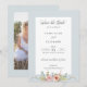 Este design romântico e elegante apresenta rosas pastéis macios e flores silvestres em tons de rosa-pincel, branco, violeta pálida e ouro sobre fundo verde-menta-claro com elemento central branco. Esta adorável design também inclui gráficos de texto fluindo em uma fonte de caligrafia personalizada e modelo de foto opcional no verso. A cor de fundo também é personalizável.