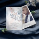 Uma fonte escrita à mão, combinada com um serif sans moderno, é usada nesta coleção de papelaria floral para estabelecer um tom quente e íntimo para o seu casamento. O cartão Save the Date mostrado aqui apresenta a sua própria imagem e o delicado sotaque cardíaco na frente, enquanto o verso tem flores e folhagem exuberantes em tons de azul empoeirado a pincel rosa macio contra um fundo de salpicos de tinta aquosa sonhadora. Procure ID771 para ver outras peças e opções de cores para este conjunto.