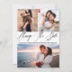 O moderno e elegante cartão adiado com o roteiro de caligrafia "mude a data" em fundo branco, suas 3 fotos favoritas. Personalize com sua mensagem, seus nomes e seu site.