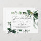 Este casamento horizontal verde da caligrafia geométrica, exceto a data é perfeita para um casamento moderno. A design apresenta galhos e folhas botânicas elegantes desenhados à mão, desenhados a aquarela, enfeitando uma armação geométrica.