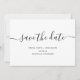 Convites de casamento modernos, mas casuais, para salvar a data em uma fonte caligráfica preta e sem serifa. Você pode colocar sua foto no verso.